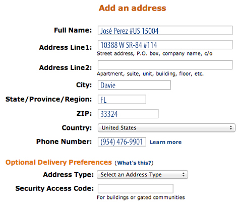 - Compra por internet colocando nuestra dirección y tu número de casillero así como aparece al lado.